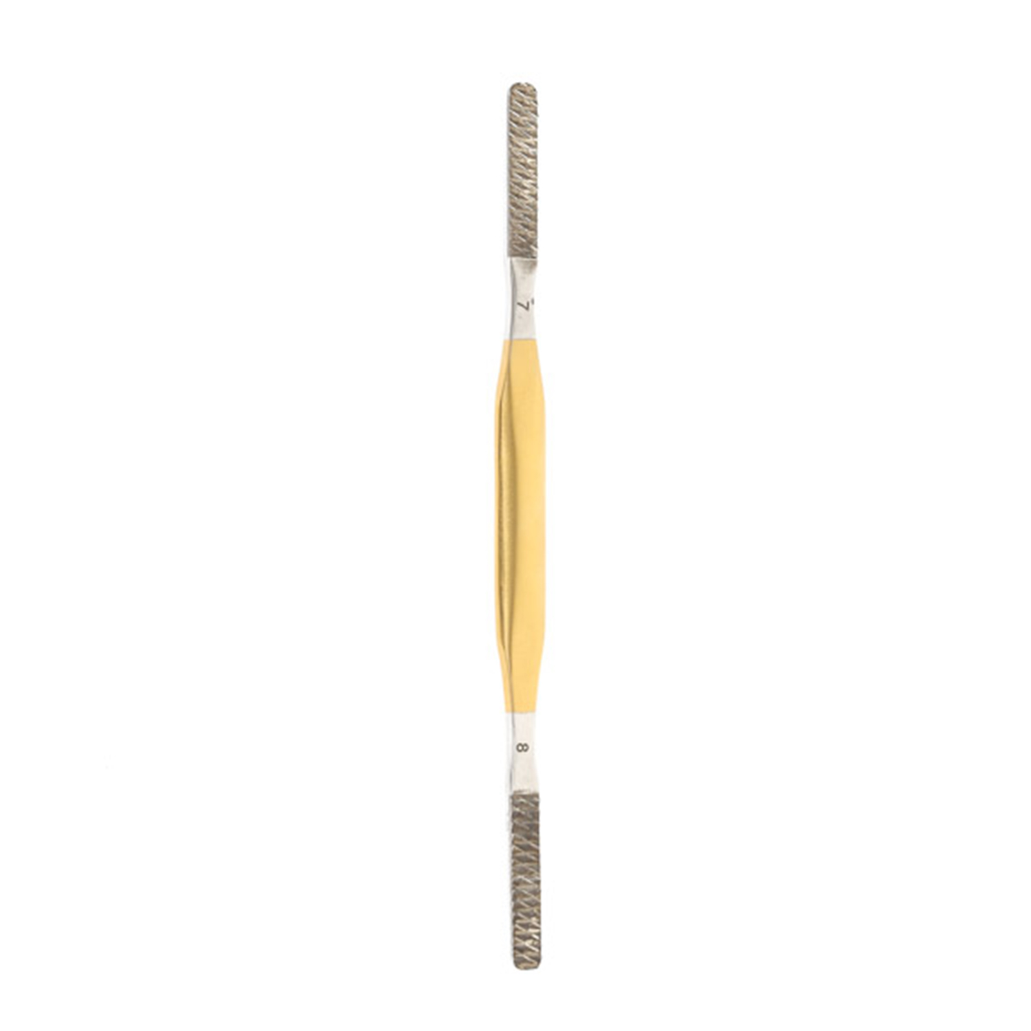 In addition, the Fomon Rasp having tungsten carbide (TC) inserts to last up to 6 times longer than standard instruments. These files have a gold handle so you can know them easily. Secondly, there are ten figures available with different patterns of serrations to suit your indications.